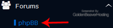 4. On the left side of your screen you should locate the "Forums" category. Click on it and then click on the "phpBB" link that will appear.