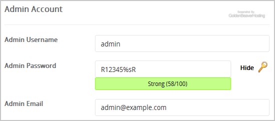 - Admin Username: Your new Zikula username (for security reason do not use the "Administrator" or the "Admin" username.)