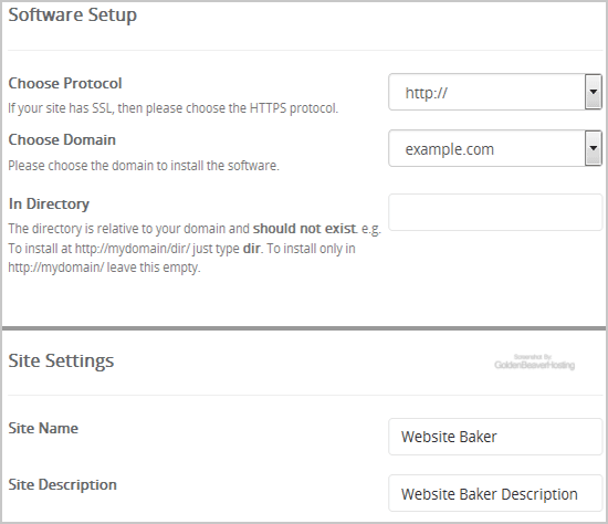 - Site Name: Enter the name of your website, such as "Website Baker".