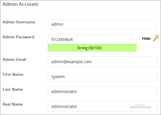 Admin Email: Your e-mail address. - First Name: Enter your first name
